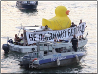 The big rubber duck action is one example of humorous and totally serious protest actions that took place in the face of state repression, one of some 160 non-violent protest Tactics4Change Case Studies that you can read about on the website of the Center for Applied Non-Violent Actions and Strategies. CANVAS was created by the Otpor student leaders and has grown into a major repository of lessons, tools, and reporting on effective non-violent resistance to authoritarianism.